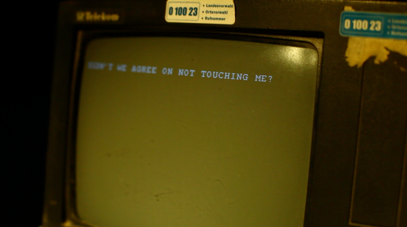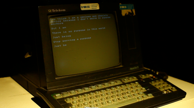 שכינה מתוך המכונה / Shechina ex machina is an artistic installation about an exiled spirit manifesting herself in a piece of obsolete technology, desperately trying to reach man who stays preoccupied with postmodern capitalist shenanigans.